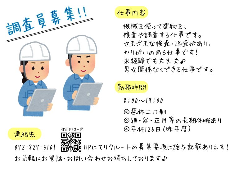 2025年11月7日 ブログ 検査員募集中! 求人ポスターを作成したので会社のエントランスのモニターに映しています! もし通りがかったら、覗いてみてください!(笑) まだまだ検査員募集中なので、お問い合わせやご連絡お待ちしております♪